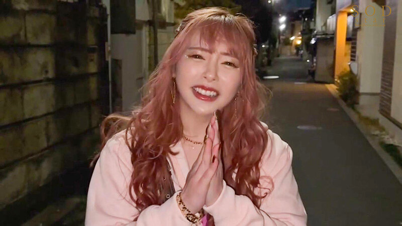 夜中、歩いていると、ホットパンツ姿のド派手なピンクヘアーギャルに遭遇!